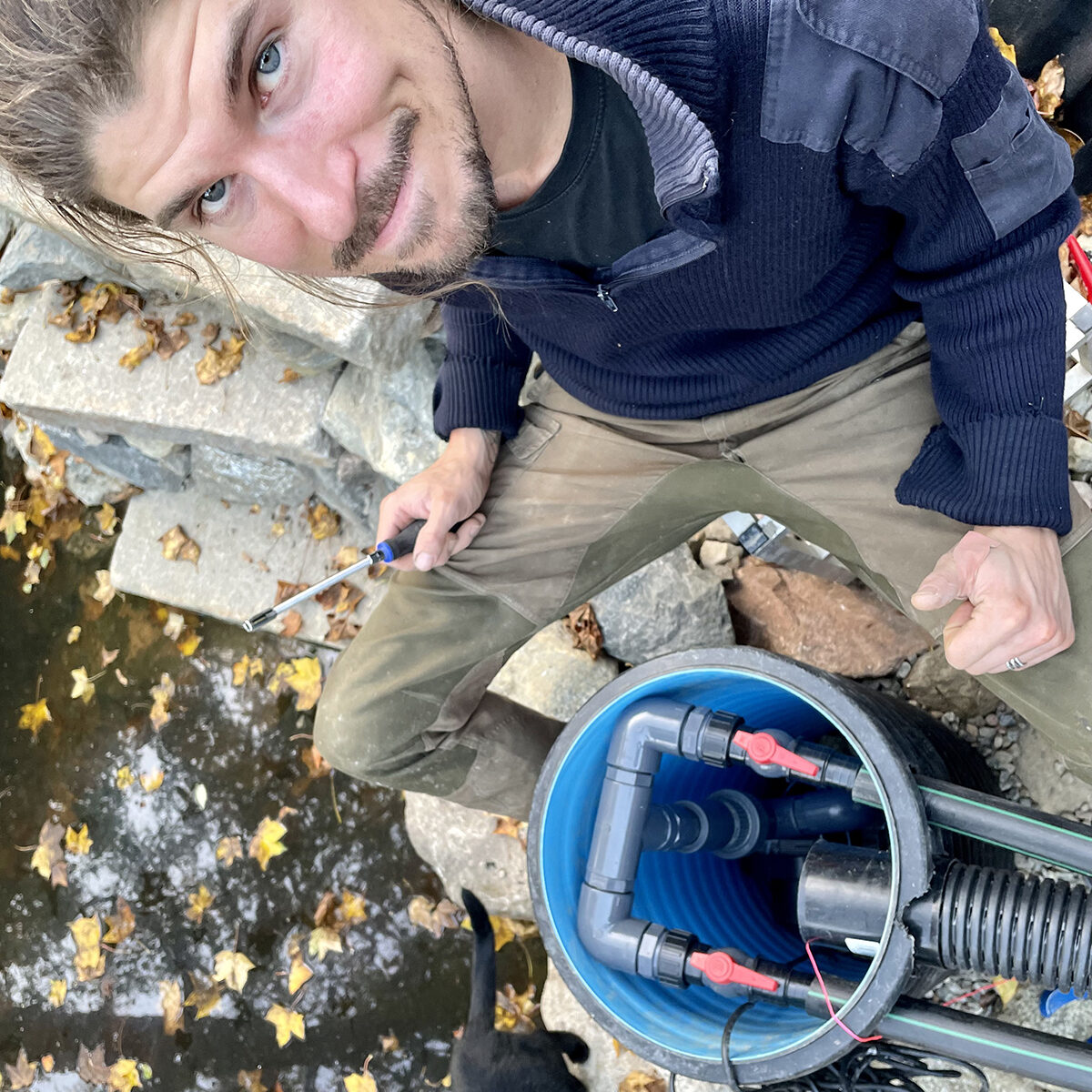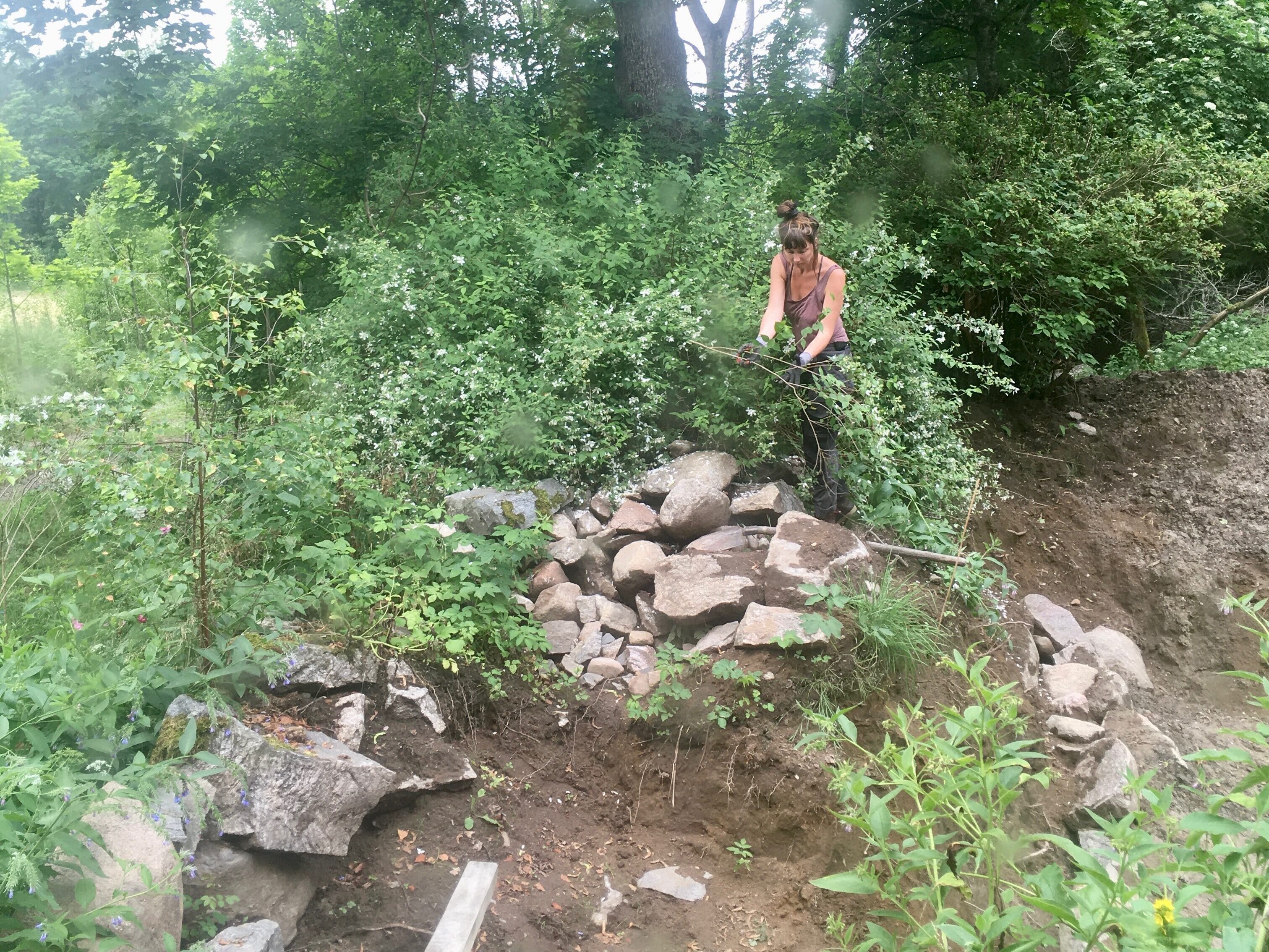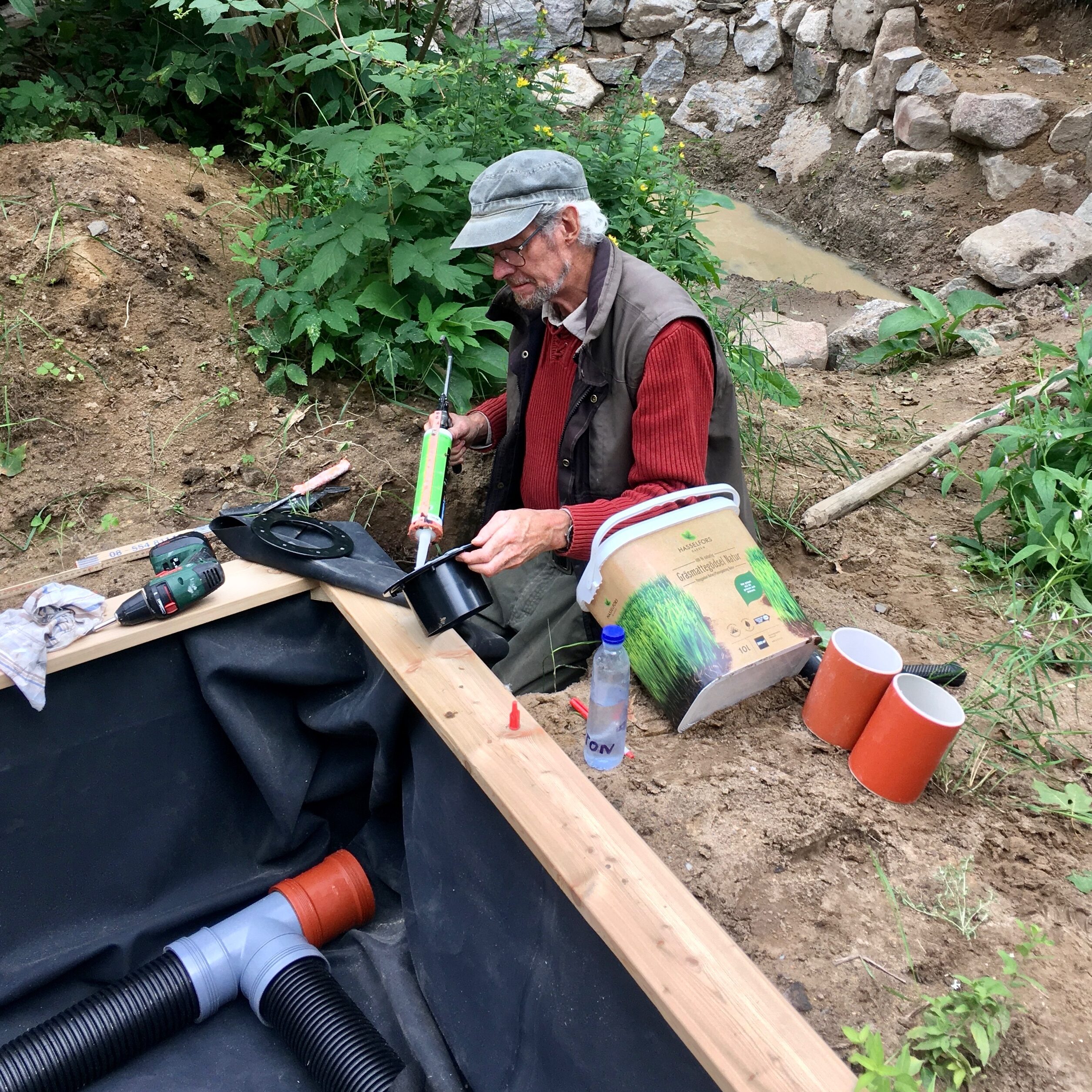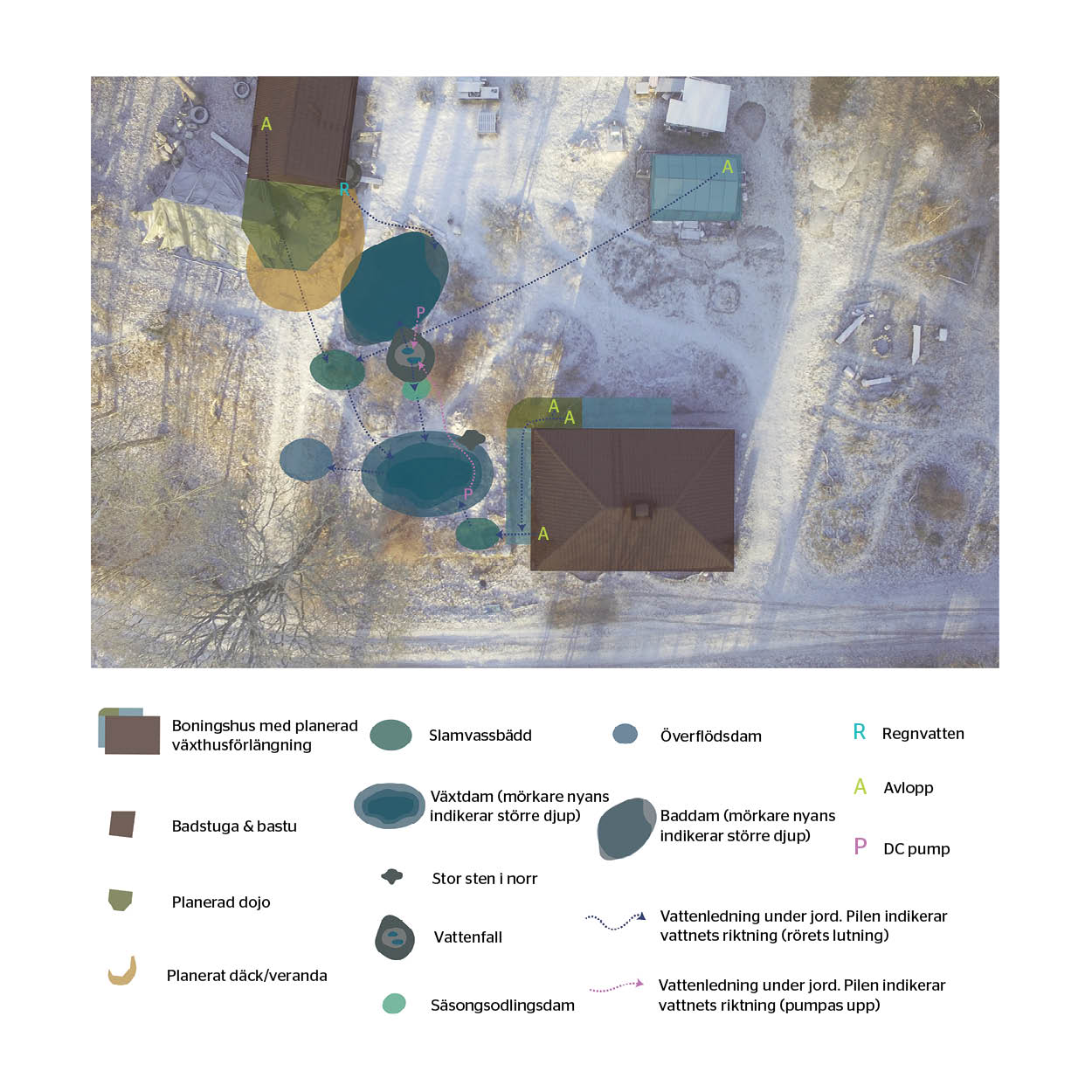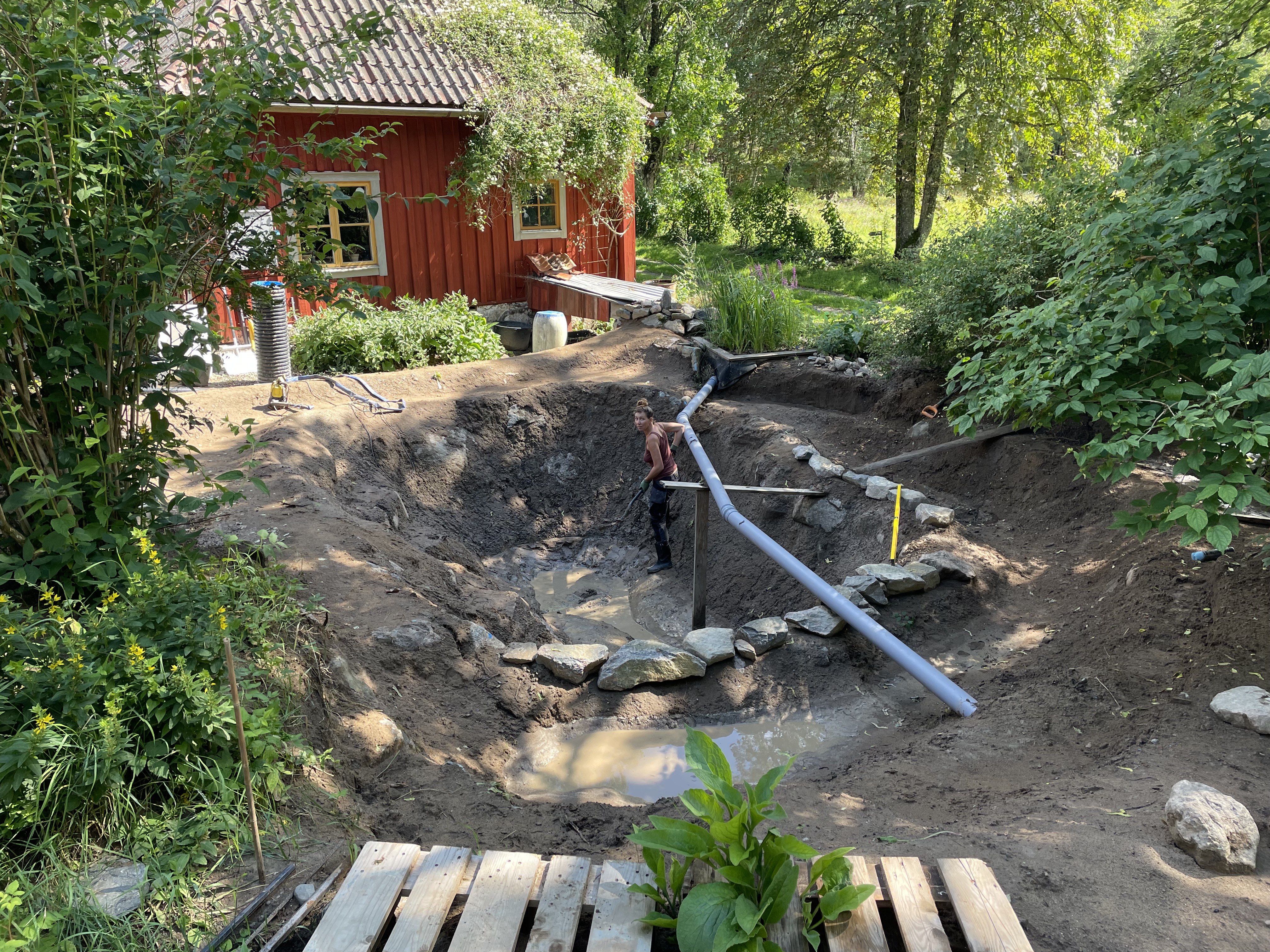 Det här projektet gick ut på att designa och bygga ett levande sötvattensekosystem i en privat trädgård i Nyköpings kommun, i syfte att hantera gråvattnet från bostaden. Systemet innefattar en vassbädd som fungerar som slammavskiljare, ett biodike med växter som ytterligare renar vattnet som kommer ut från vassbädden, två vattenfall och en biodiversitetsdamm. Dammen är byggd så att det blir ett lagom fall från huset, så att vattnet kan transporteras av med hjälp av tyngdkraften. På så vis kan vattnet rinna från huset och genom de olika stegen.