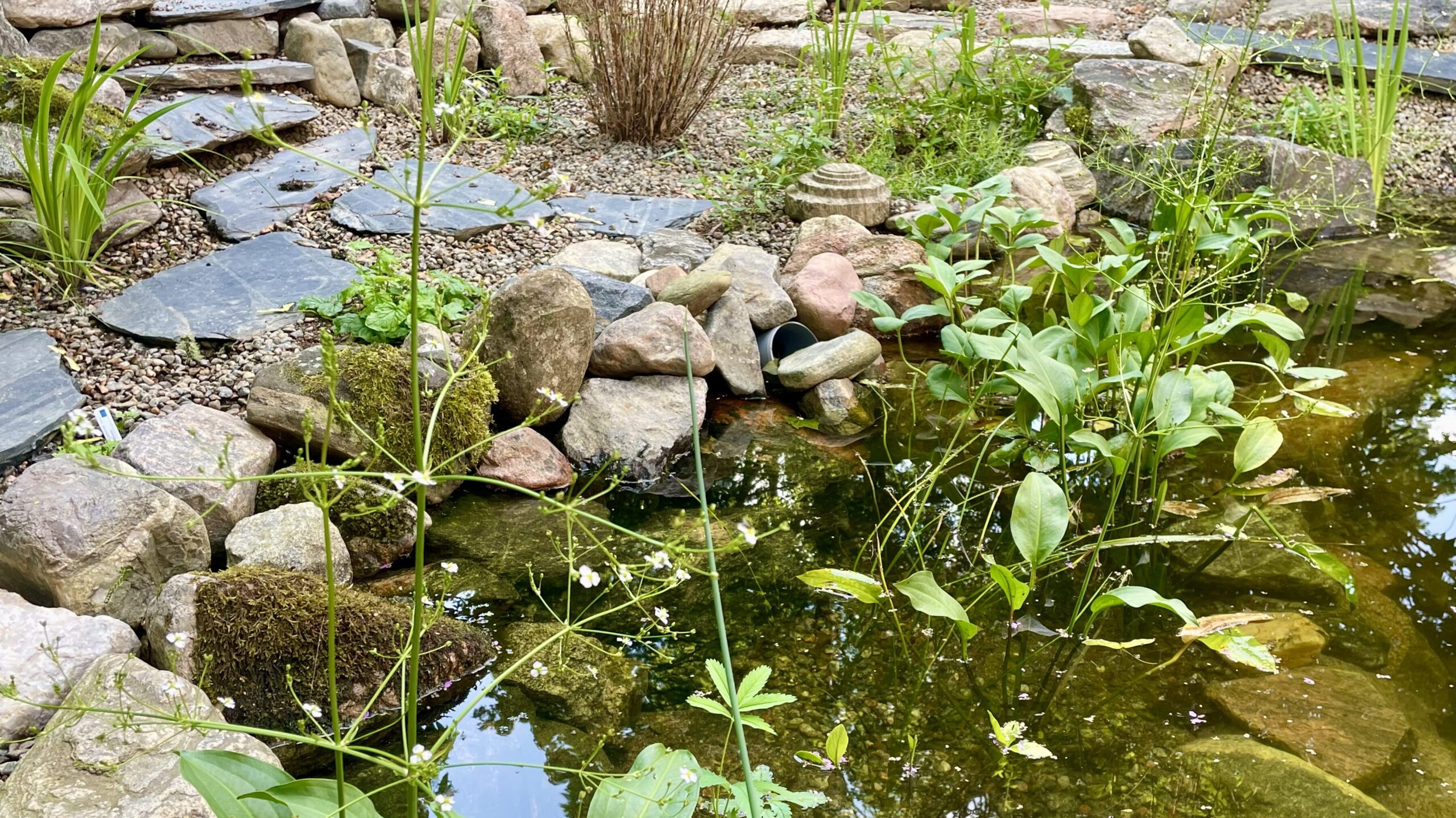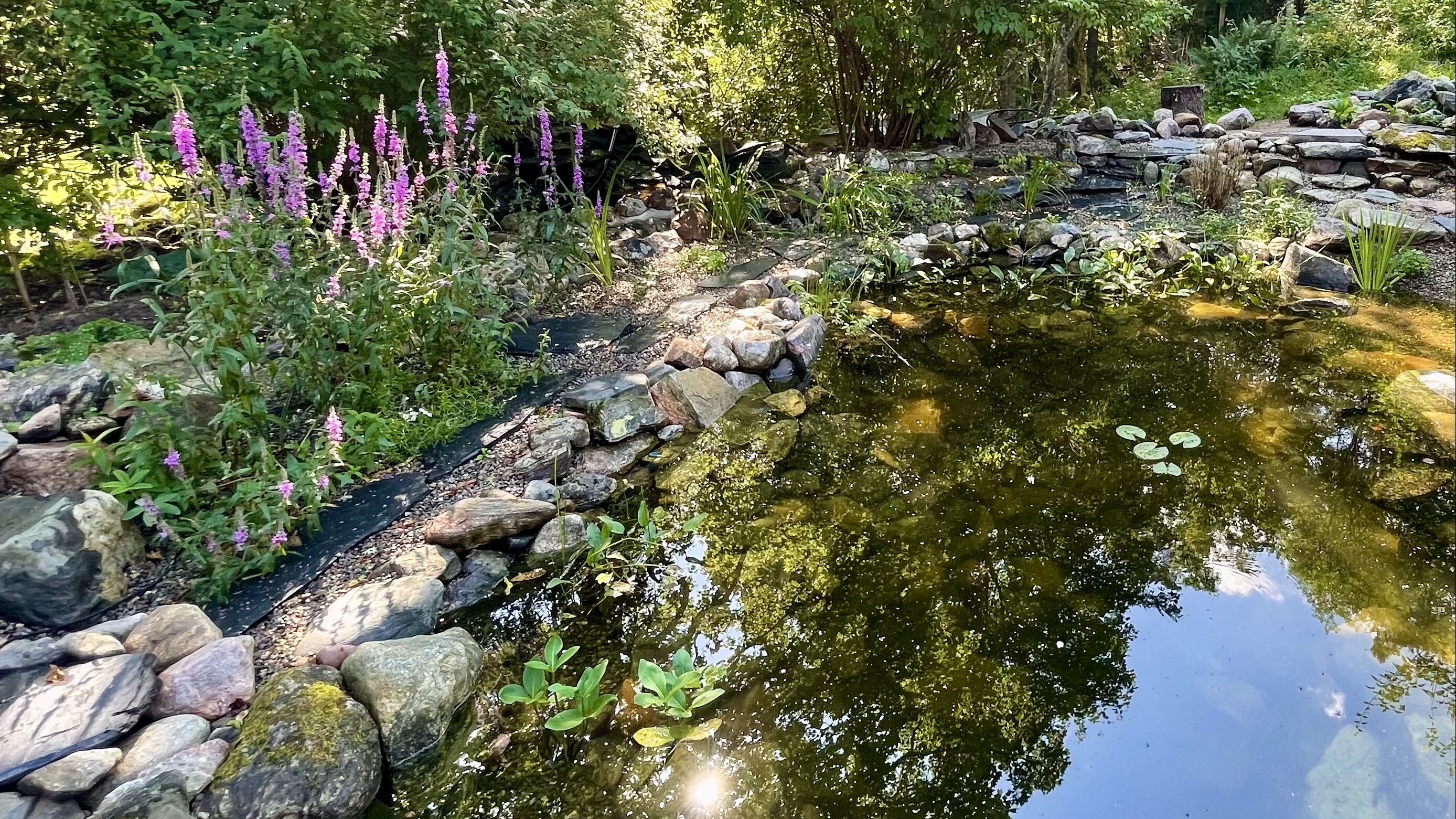 Nu finns ett frodigt och livligt ekosystem i en, tidigare bortglömd, del av trädgården. Dammen är ett hem för otaliga arter.