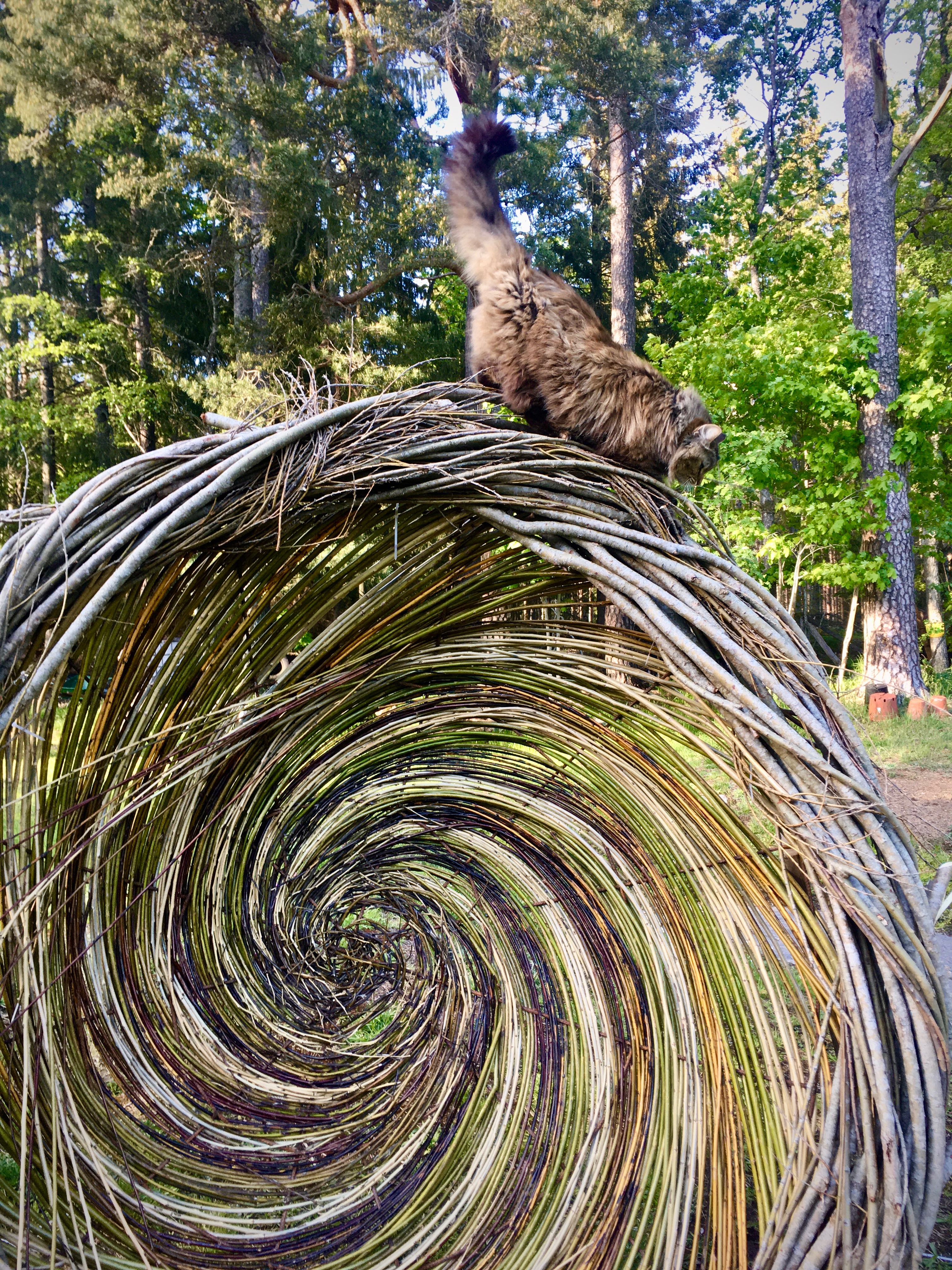 Längsmed Naturstigen i Stendörrens naturreservat finns stationer med informationsskyltar där besökare kan lära sig om platsens ekologi, biologi och kulturhistoria. Vid några av dessa stationer har jag blivit anlitad för att platsbygga skulpturer, som kan komplettera informationen på skyltarna. Vid skylt nr. 10 får besökaren lära sig om havsörnar. Min uppgift var att illustrera innehållet på skylten och jag valde att bygga ett bo, eftersom dagens havsörnar lider av bostadsbrist. Min (möjligtvis väl optimistiska) förhoppning är att en örn, så småningom, ska tycka att boet duger till att bygga vidare på!