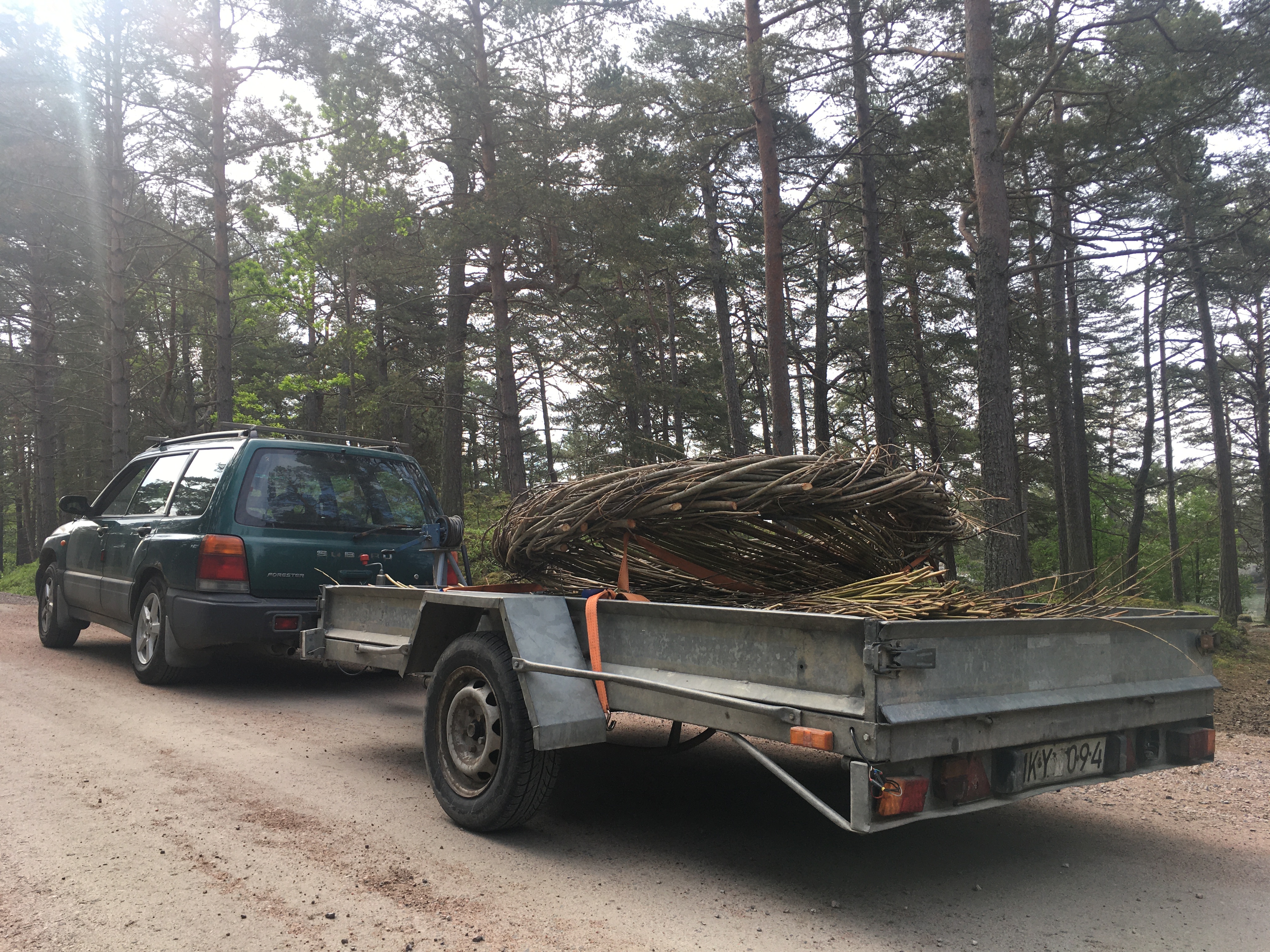 Nästa steg var att skörda materialet till ”kronan” i en av kommunens lokala energiskogar (givetvis med kommunens medgivande).