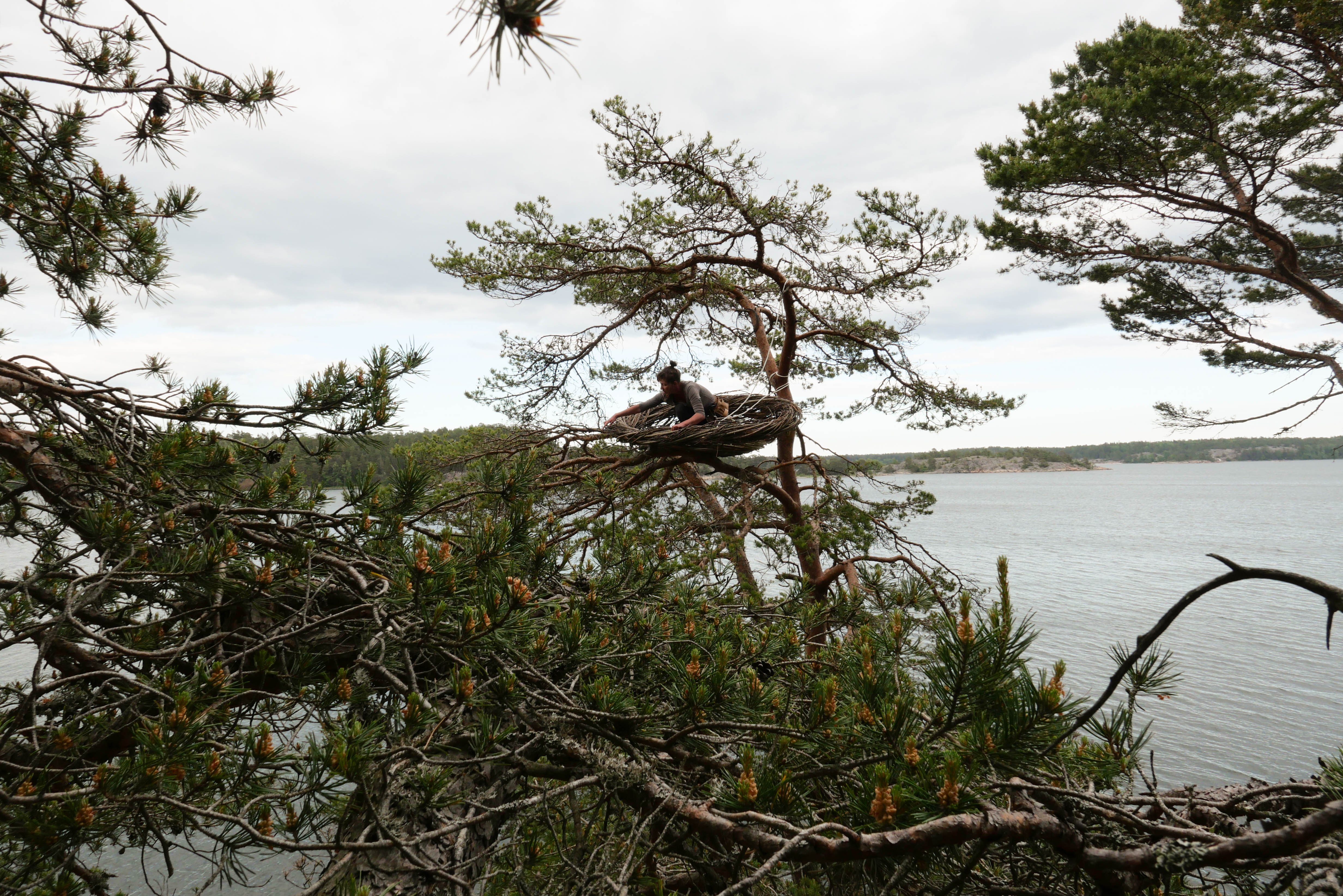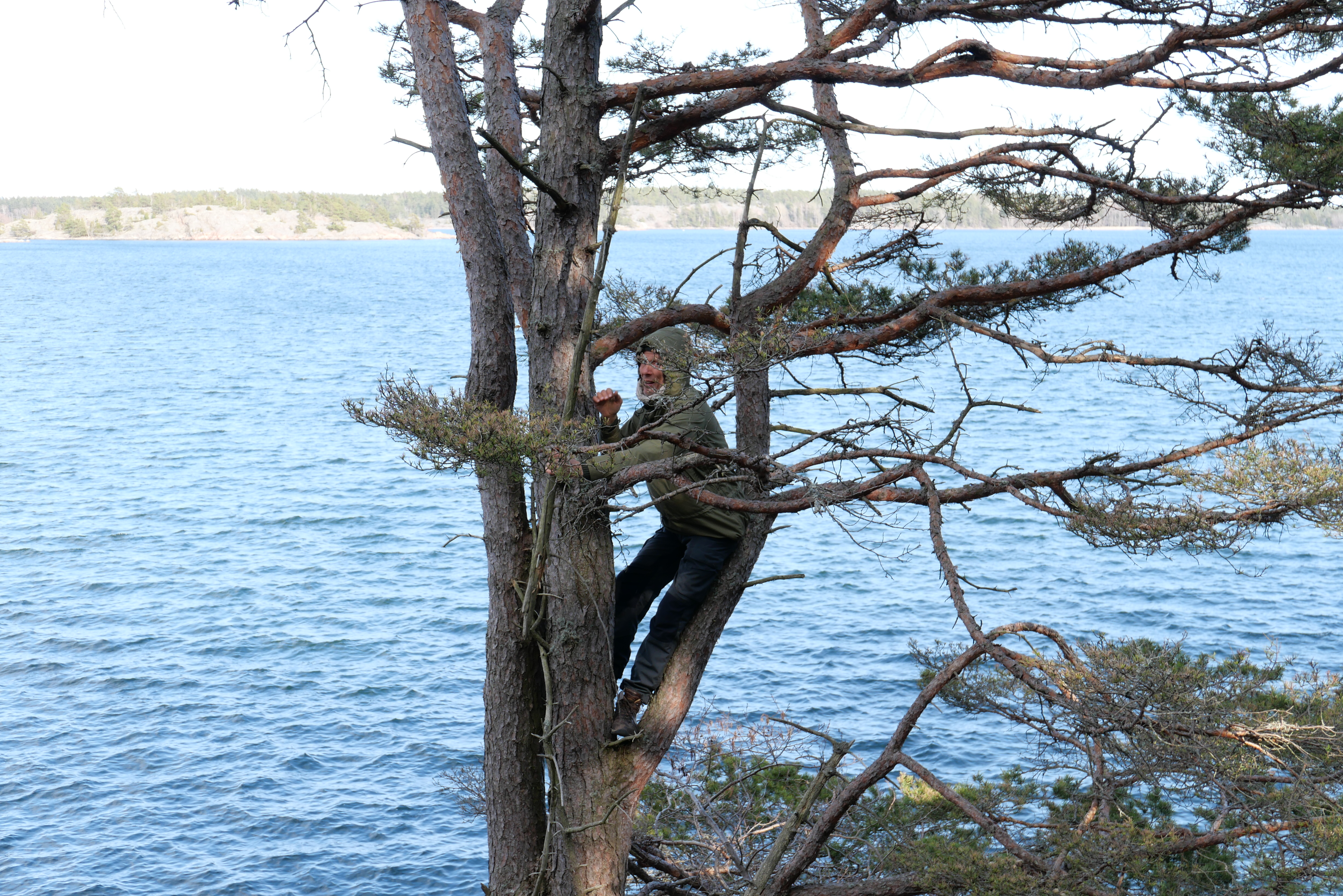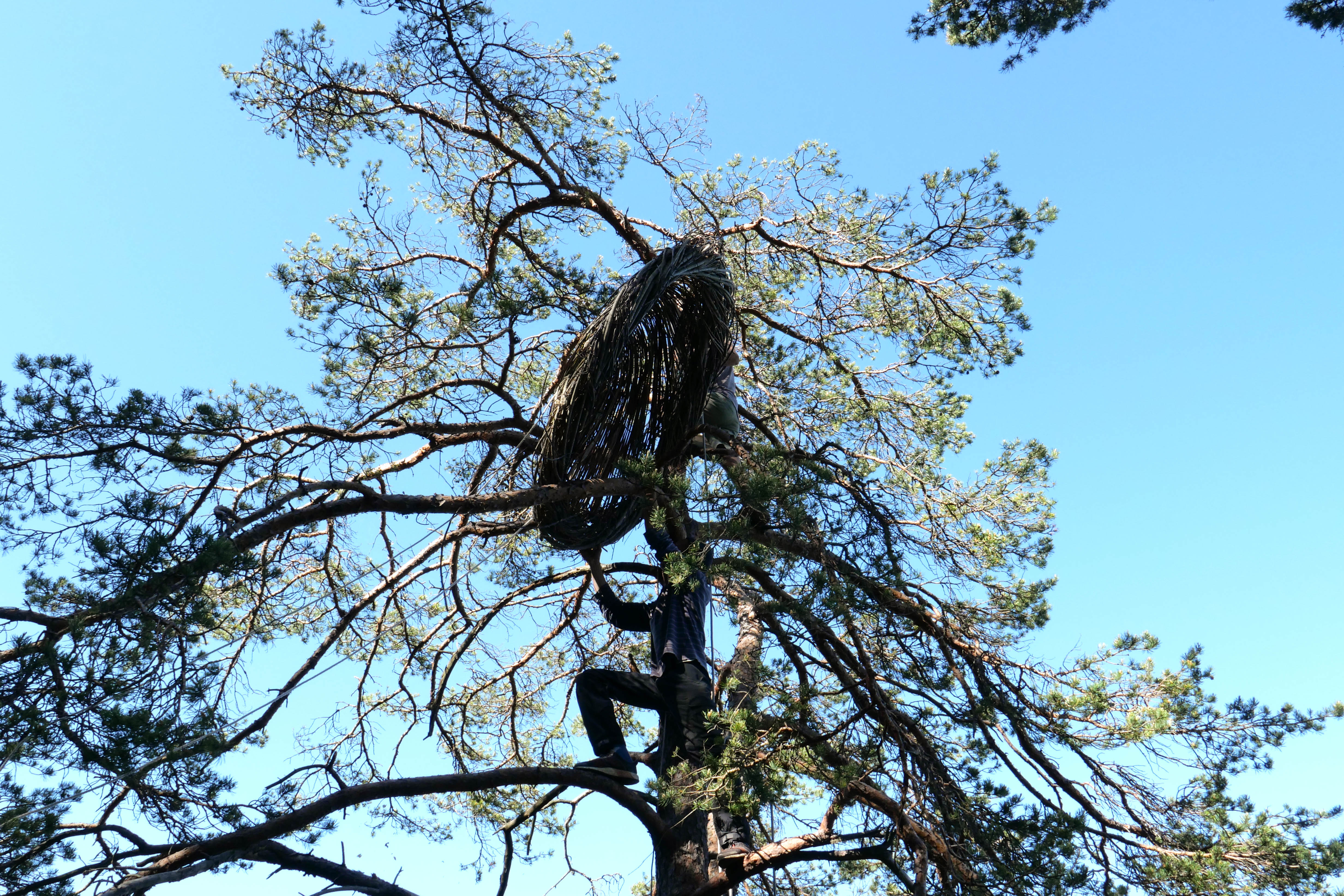 Först fick jag lov att utse en lämplig tall och därefter skicka upp Torsten Grind för att rekognoscera terrängen i toppen och agera fågelbo, så att jag kunde besluta om placeringen.