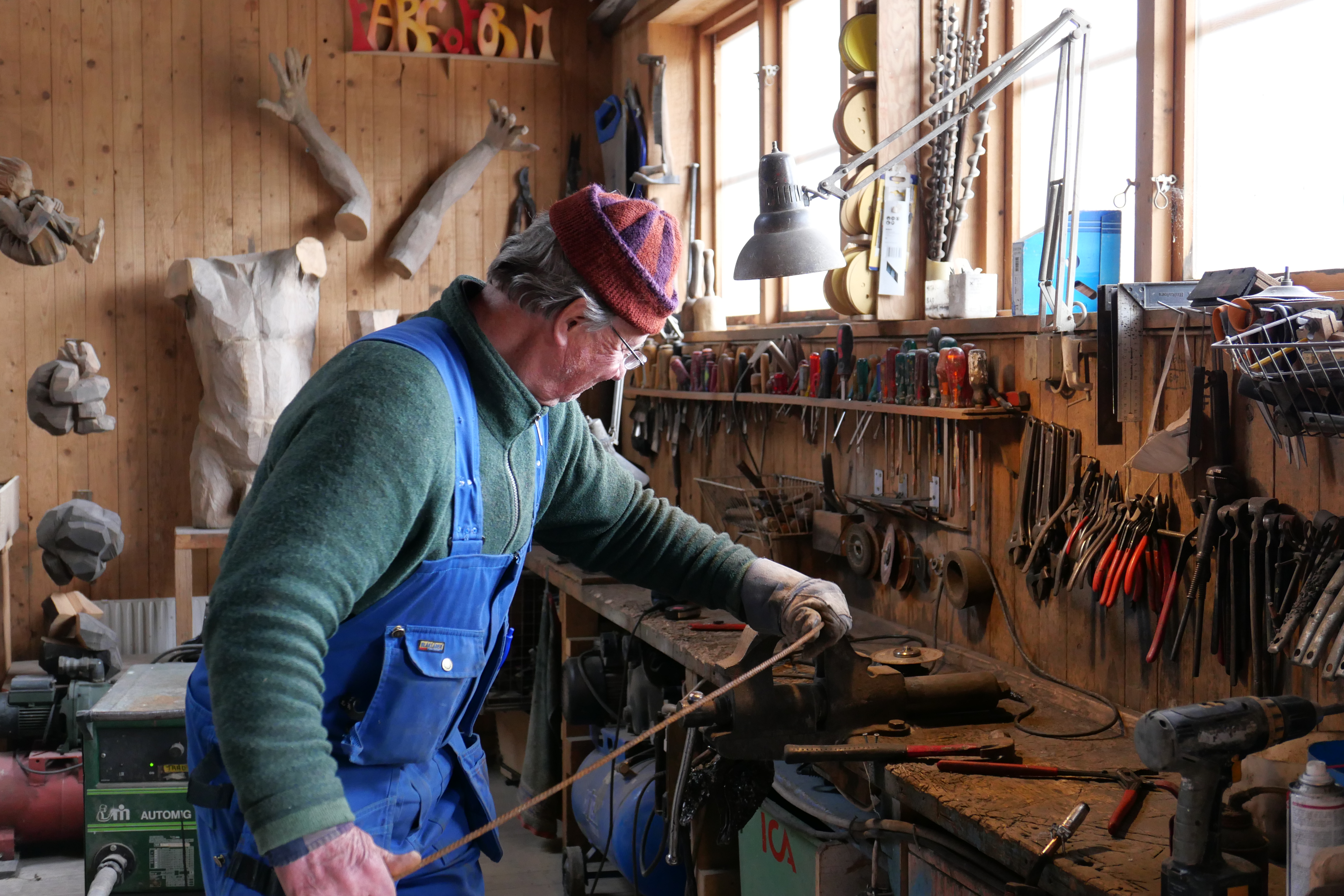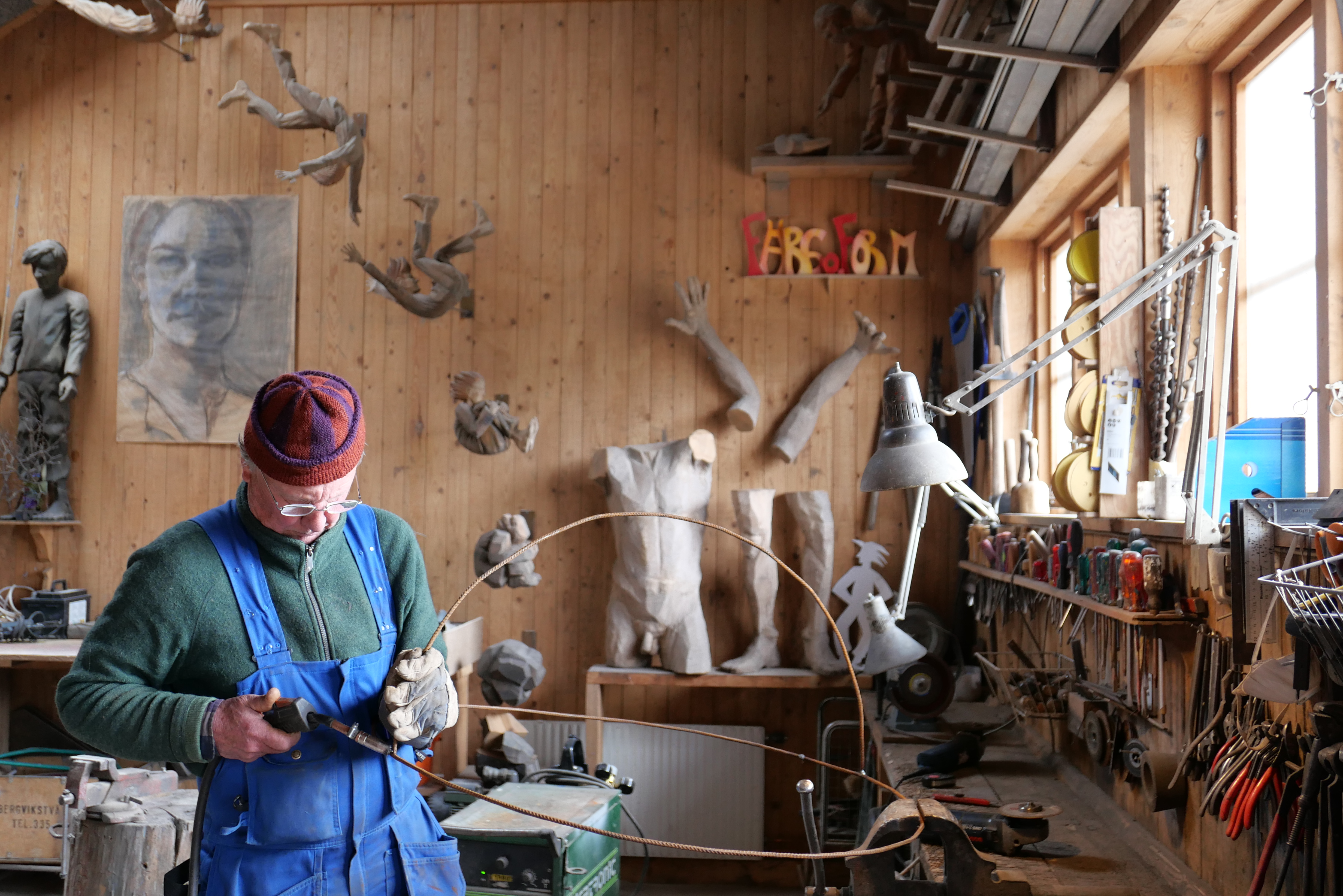 När designen var färdig anlitade jag Hans Bartos för att hjälpa mig att svetsa ihop stommen, i hans vackra verkstad utanför Järna.