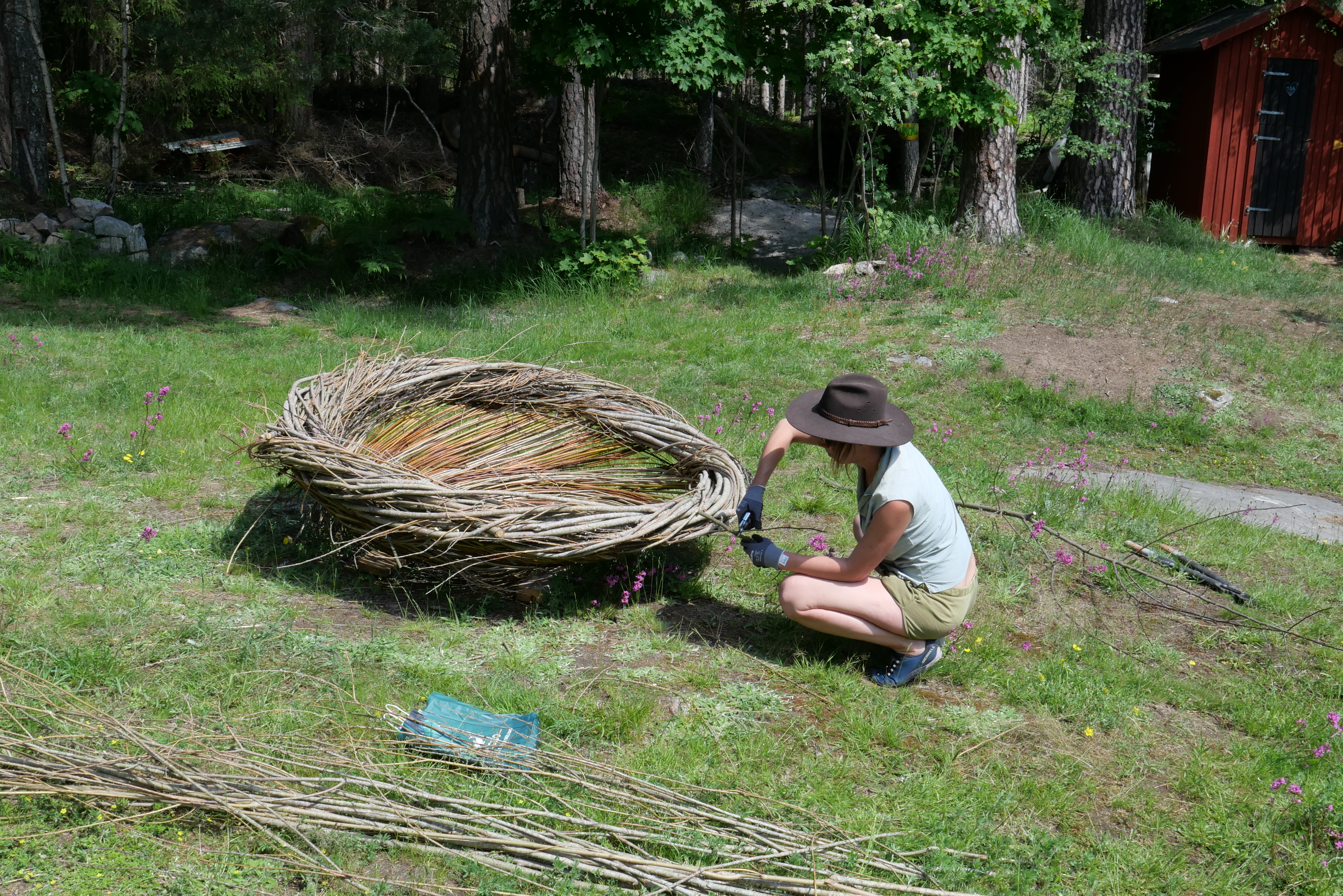 Sedan var det bara att sätta igång och fläta, bända, vrida och pussla ihop alla fibrer – bygga bo helt enkelt.