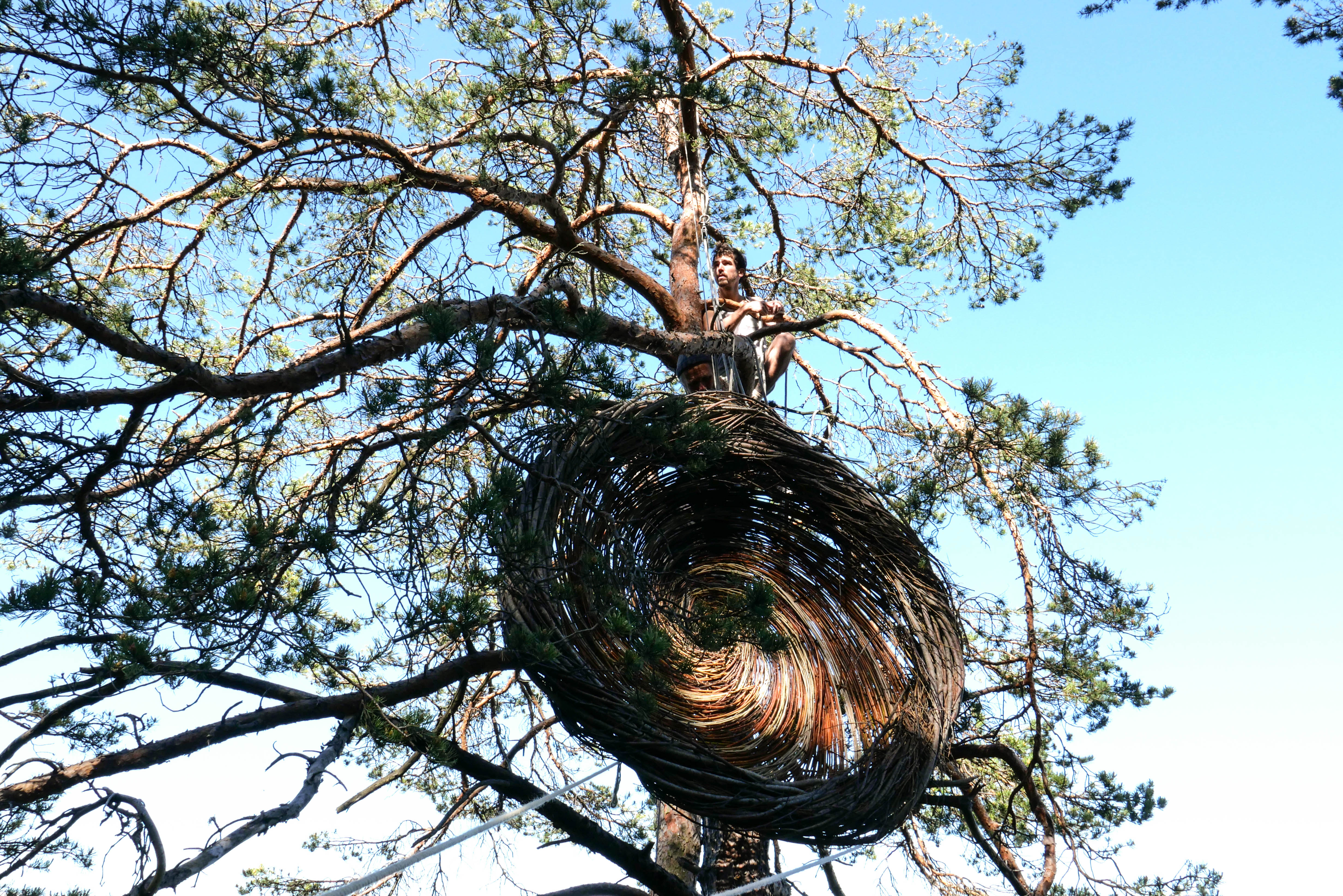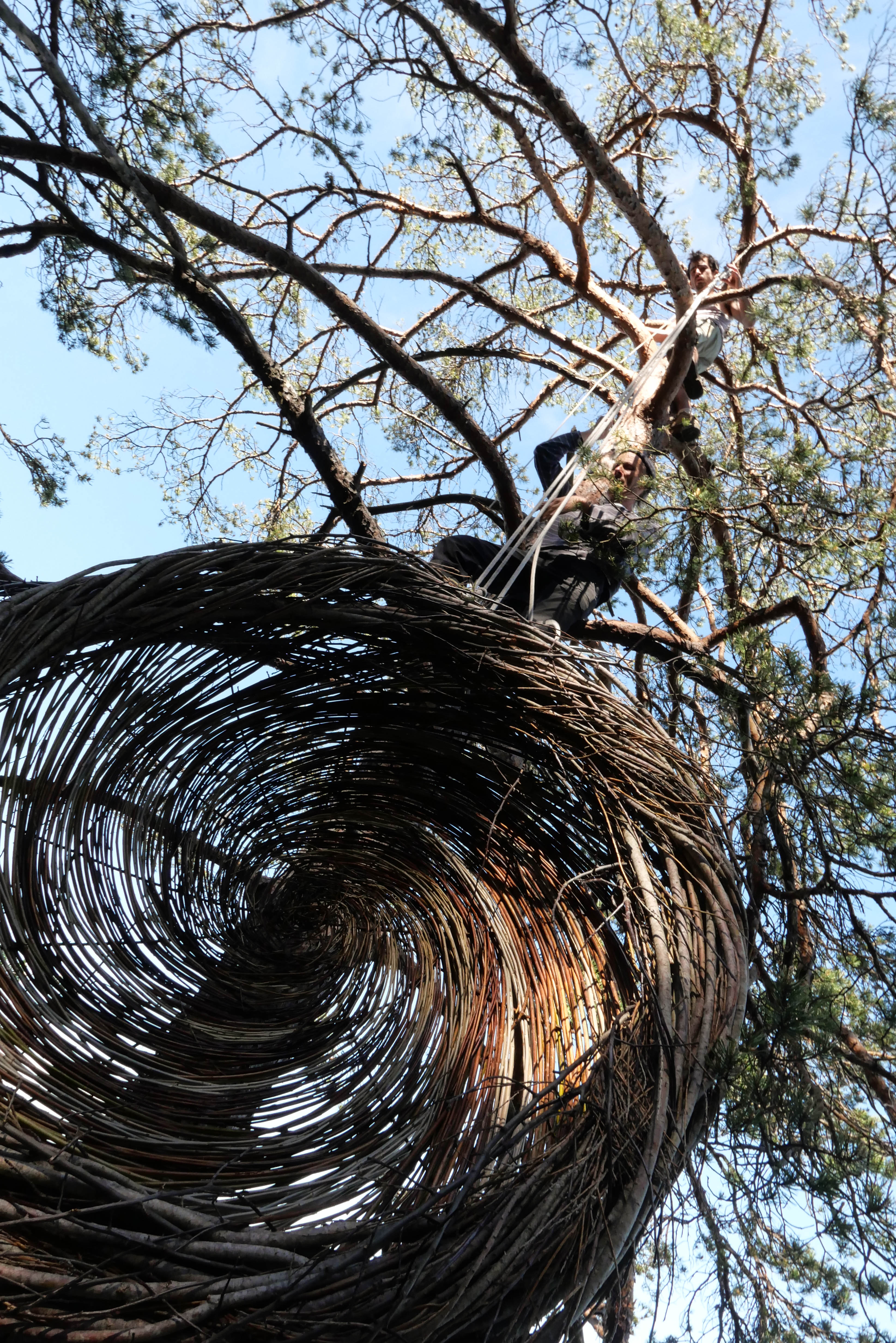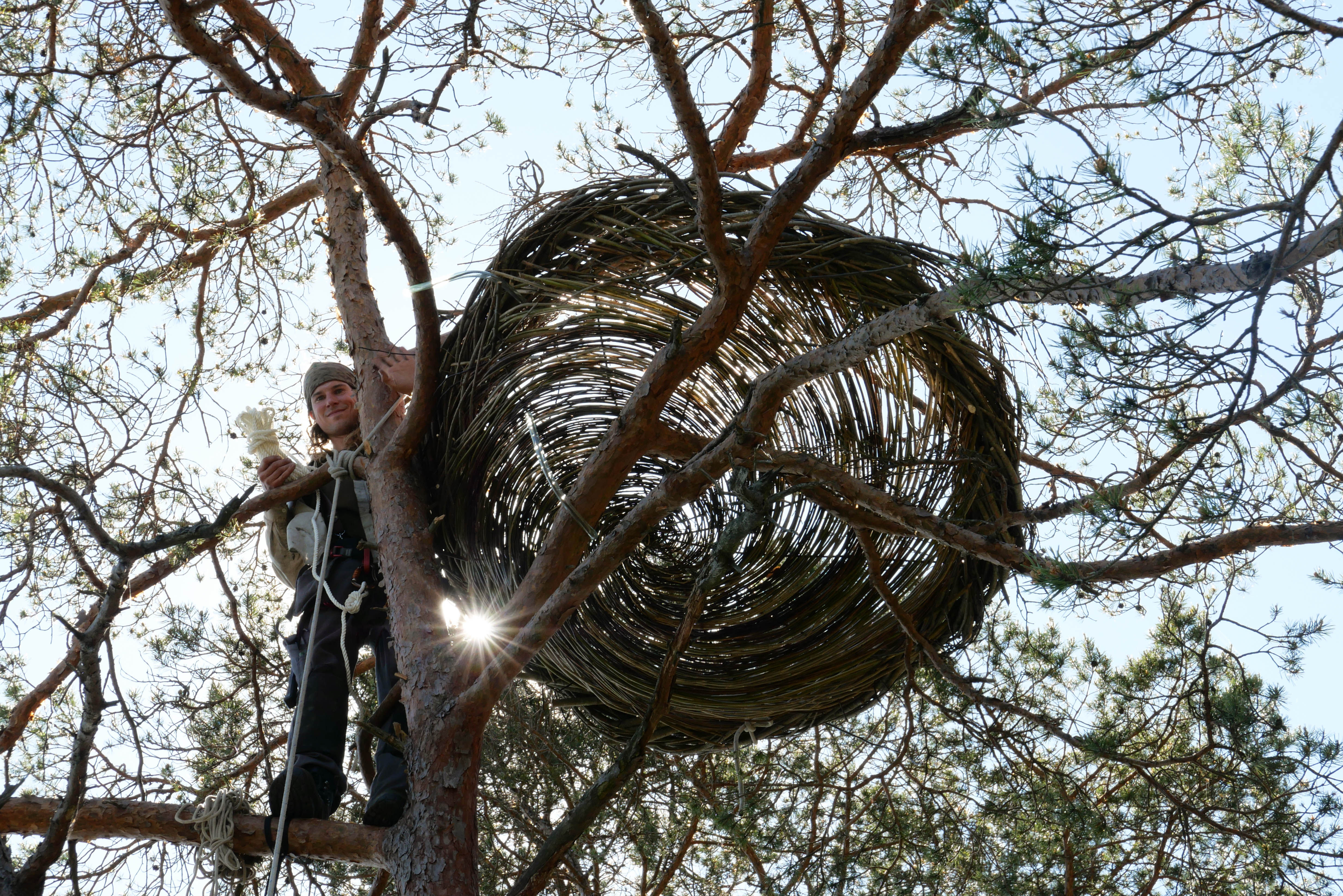 Den här skulpturen bjöd på en mängd utmaningar. Inte nog med att själva boet måste vara stabilt och hållbart nog för att klara av det hårda klimatet som den ytterst blåsiga kuststräckan bjuder på, det måste också vara lätt och smidigt nog för att vara möjligt att fira ca 10 meter upp i en talltopp. Platsen var dessutom belägen en bra bit från närmsta väg så transport till platsen måste tas i beaktande.