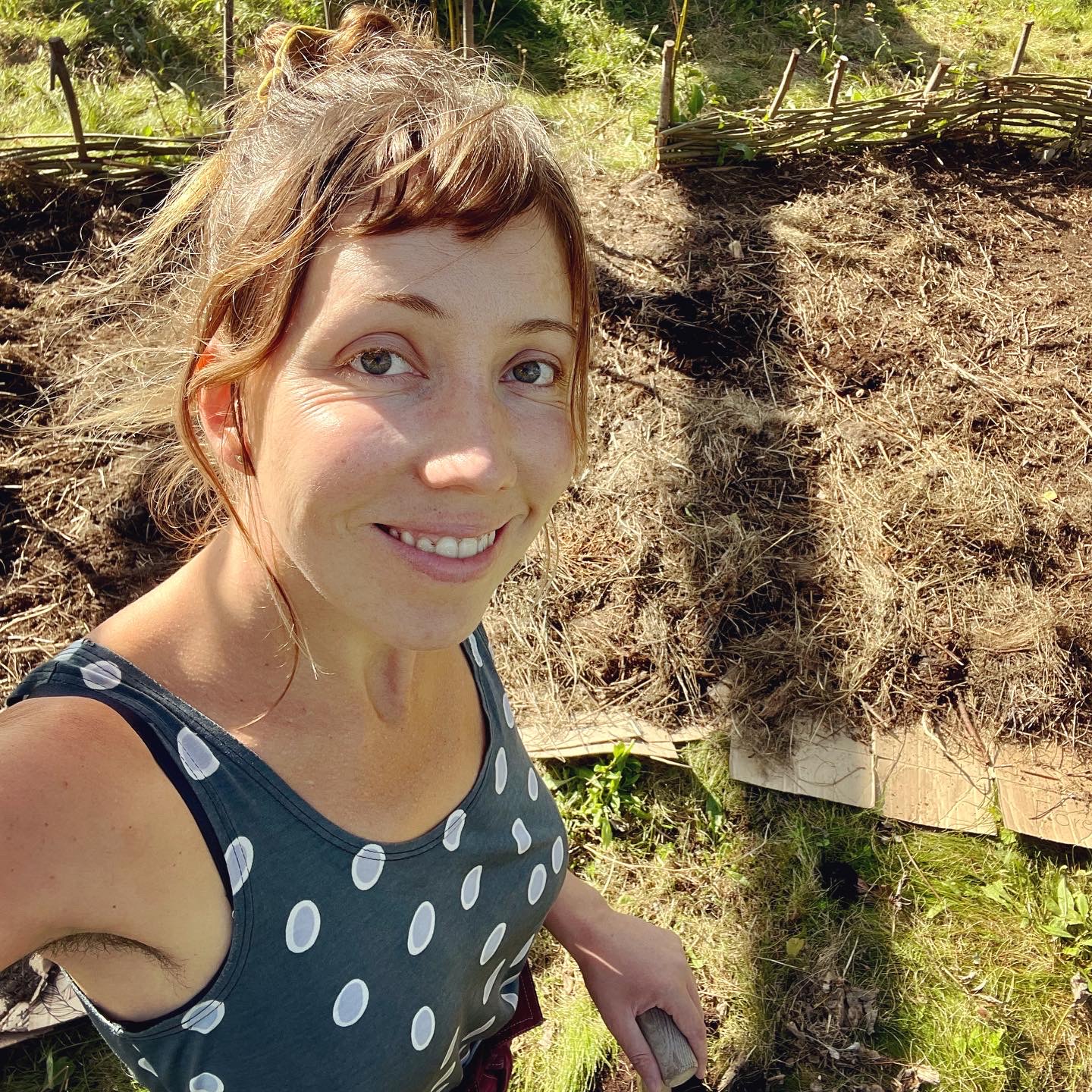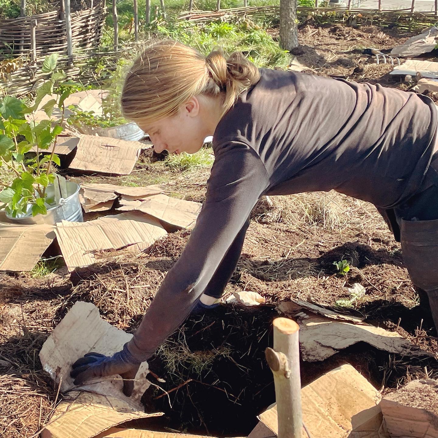 På våren utformade jag gångarna med sten, fiberduk, sand och träflis. Här fick jag hjälp av Peter Tallbergström.