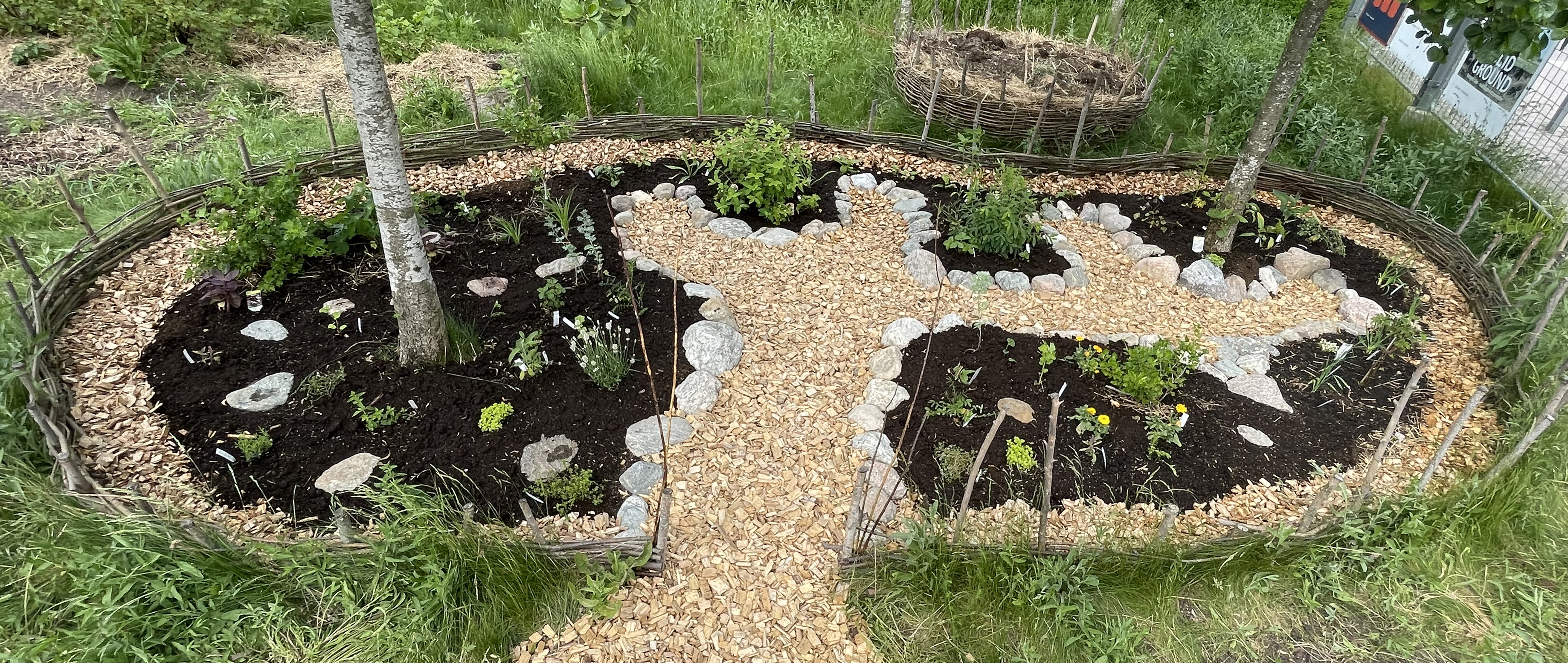 Jag och praktikant Emilia Nylén planterade buskskiktet på hösten, tillsammans med några av örterna som föredrar att etableras på hösten. Sedan fick anläggningen vila under vintern.