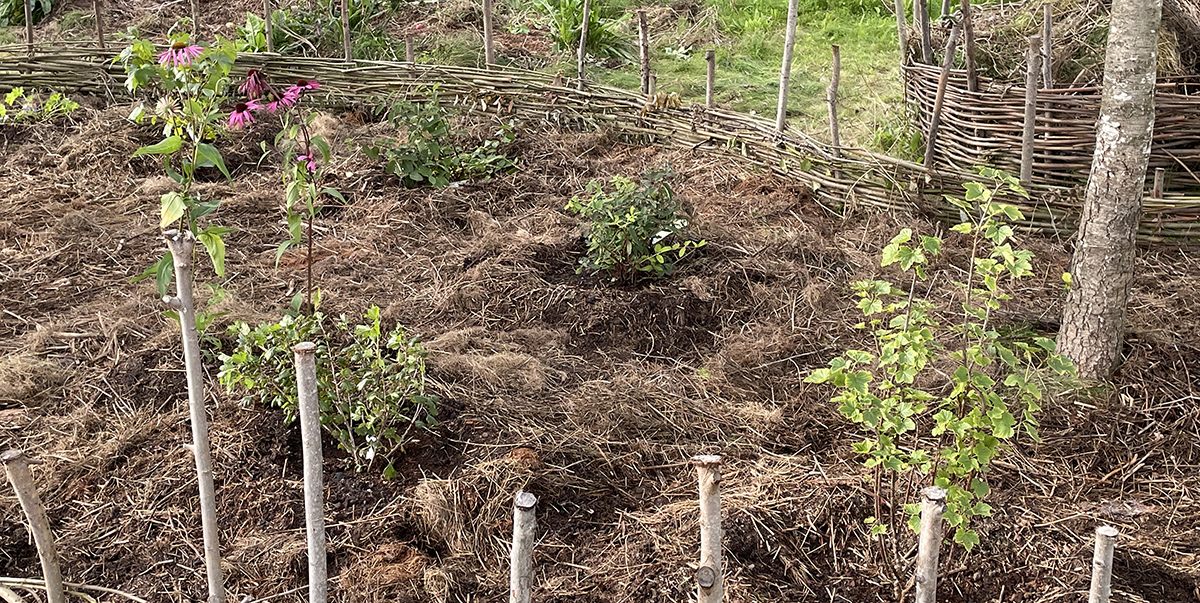 Bilden är tagen strax efter att den sista plantan hittade sin plats, sommaren 2024. Till nästa sommar har de säkerligen växt en hel del.
