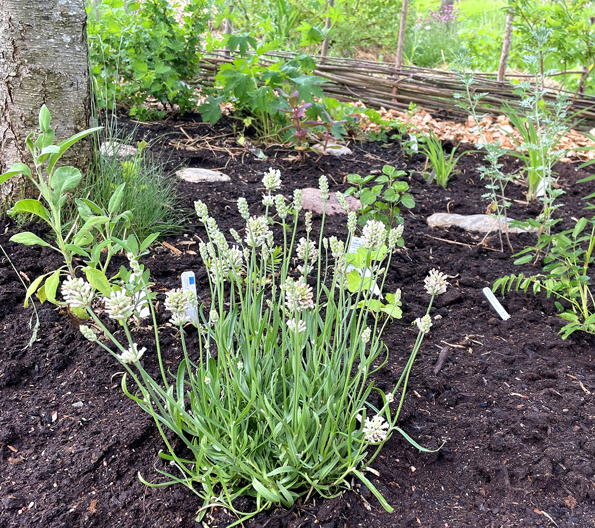 Sedan var det dags att plantera in resterande arter. Många av växterna jag valde att plantera har en kulturhistorik koppling, de har alltså använts i olika sammanhang av människor i Sörmland eller i Sverige, historiskt. Några har medicinala egenskaper, andra används som kryddor eller till te. Vissa ger ätliga bär eller frukter och andra kan ha använts som spannmål eller för material.