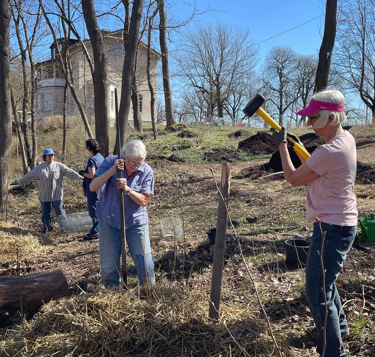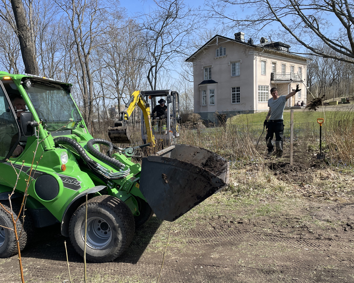 Den första riktigt härliga vårdagen i april 2023 fick jag hjälp av Norrköpings kommuns arbetslag och deras enastående arbetsledare Lars Jönsson, samt projektledare Anna Asplind och Landskapsarkitekt Peter Tallbergström. Tillsammans lade vi grunden för utformningen av platsen, och förberedde för plantering.