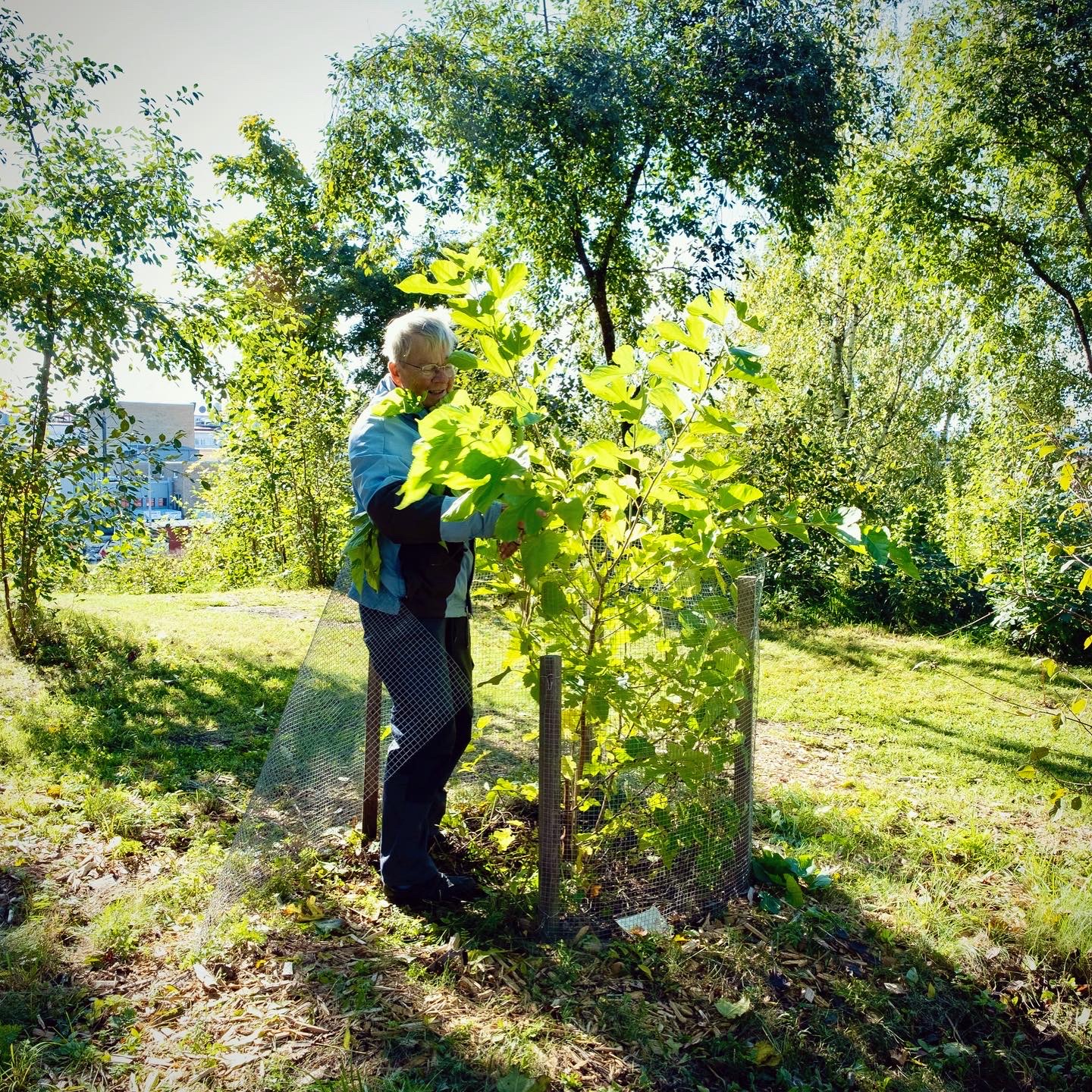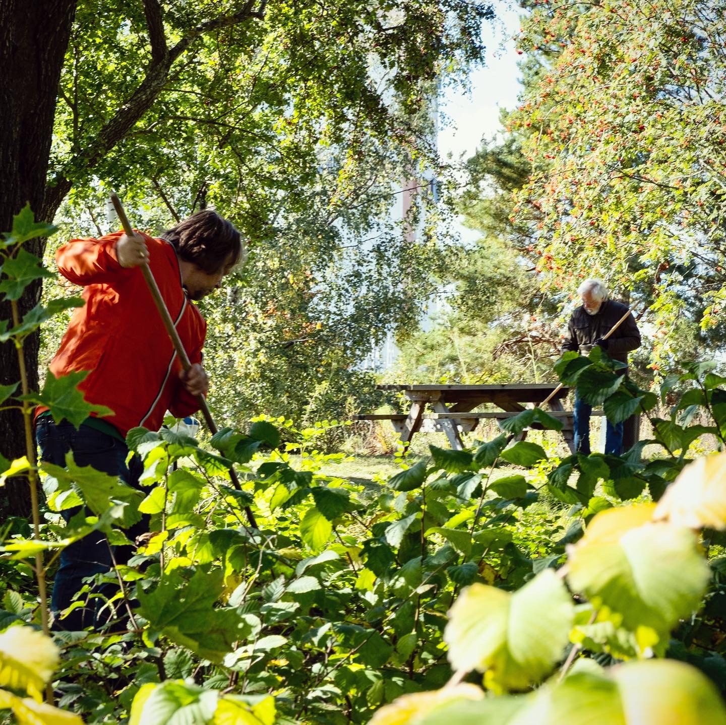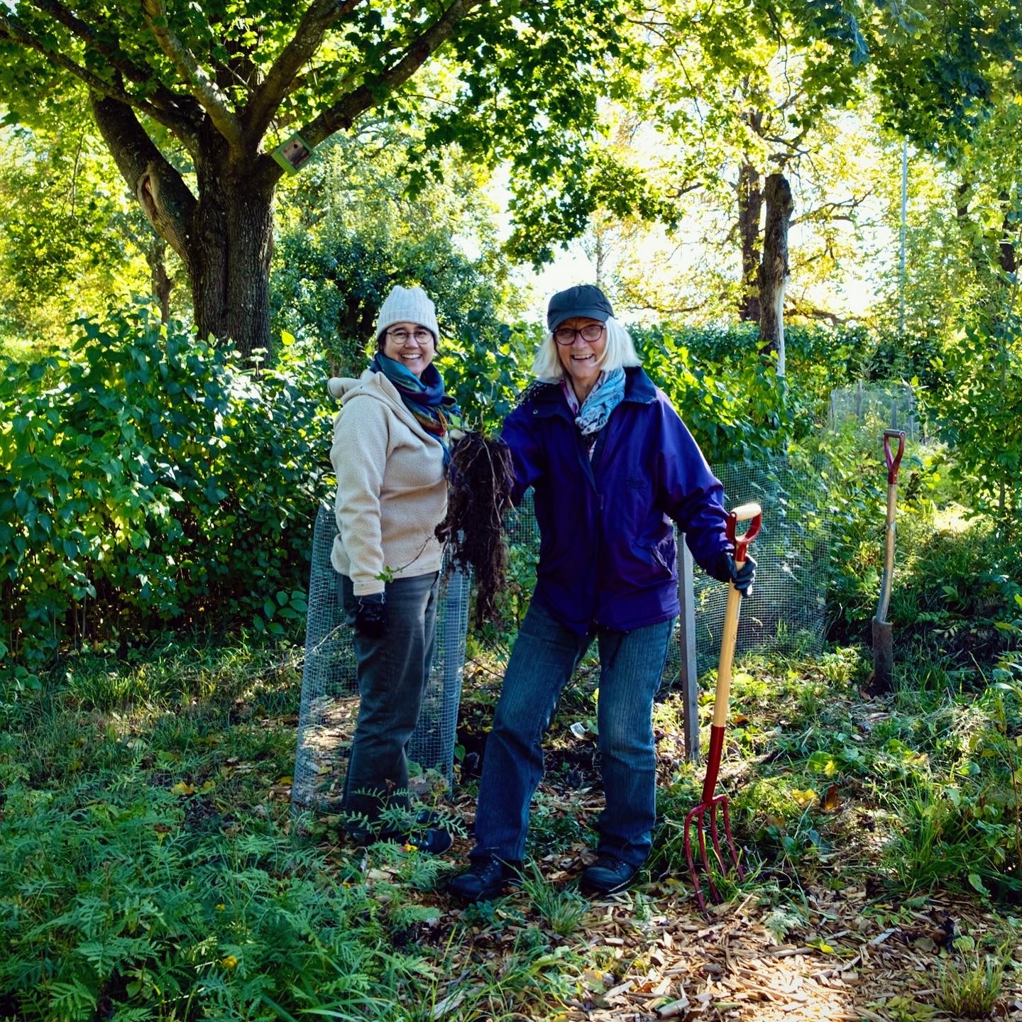 Hösten 2024 genomförde vi en första officiell arbetsdag i trädgården. Många av volontärerna som var med och planterade trädgården kom tillbaka men många nya intresserade lokalbor dök också upp. Vi utförde en liten höstbeskäring, fixade stängsel, bäddade in växterna och gjorde en inventering inför nästa säsong.