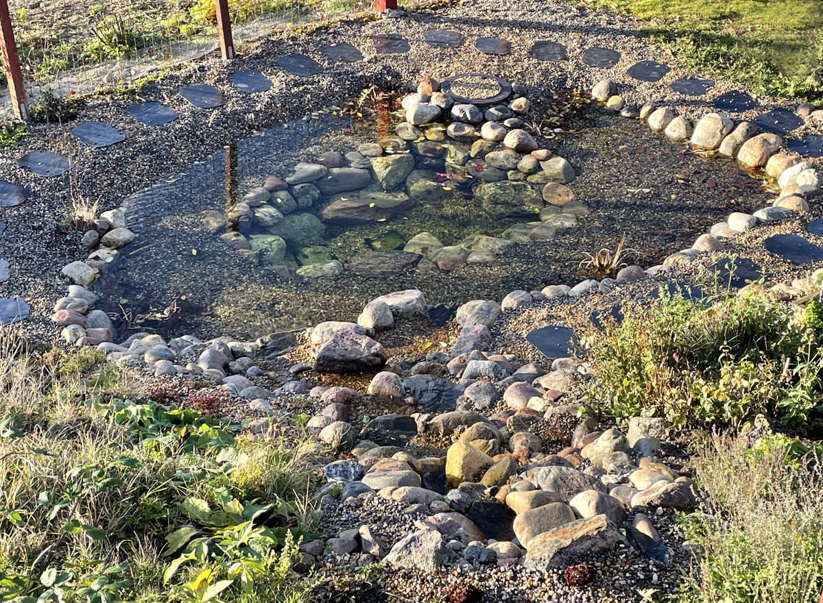 Kundens önskemål med det här projektet var att skapa en levande vattenmiljö i en ”outnyttjad” del av trädgården. Det primära syftet var att bidra med vatten till platsen för att förbättra förutsättningarna för liv och därmed öka biodiversiteten. I just det här fallet var intentionen inte att kunna bada, kunden ville istället maximera dammens potential att härbärgera olika arter av växter och djur.
